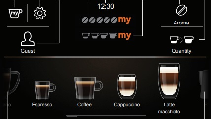 Встроенные программы позволяют выбрать до 13 функций приготовления — среди них 10 рецептов кофе, горячее молоко, подача горячей воды для заваривания чая, а также пар, который поможет получить молочную пенку, например, для десертов. Пользователь может отрегулировать крепость кофе, его температуру, а также количество, например, получить двойной эспрессо.